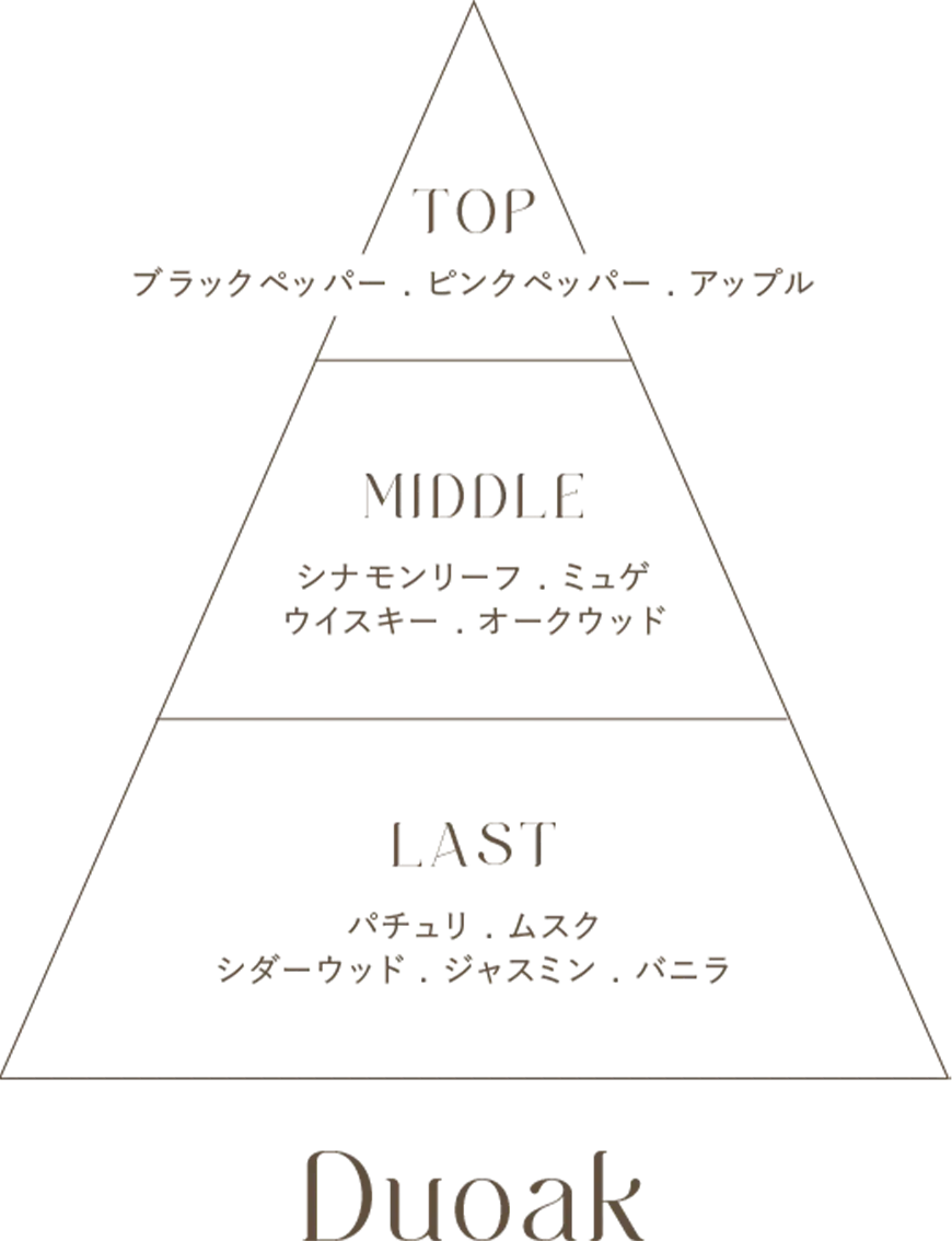 サンダルウッドとアンバーの香りが重厚感を与え、